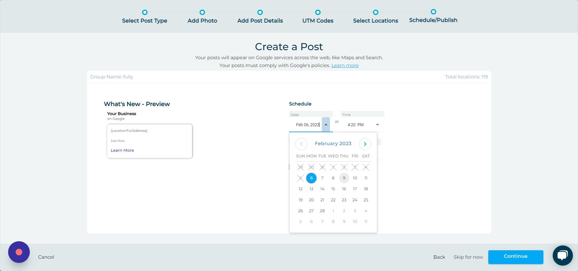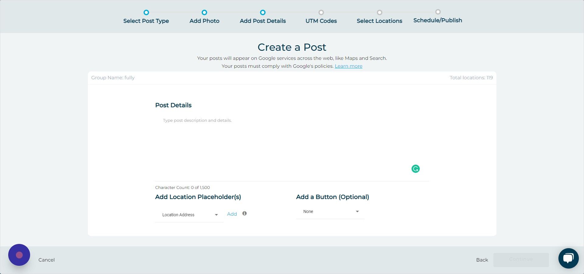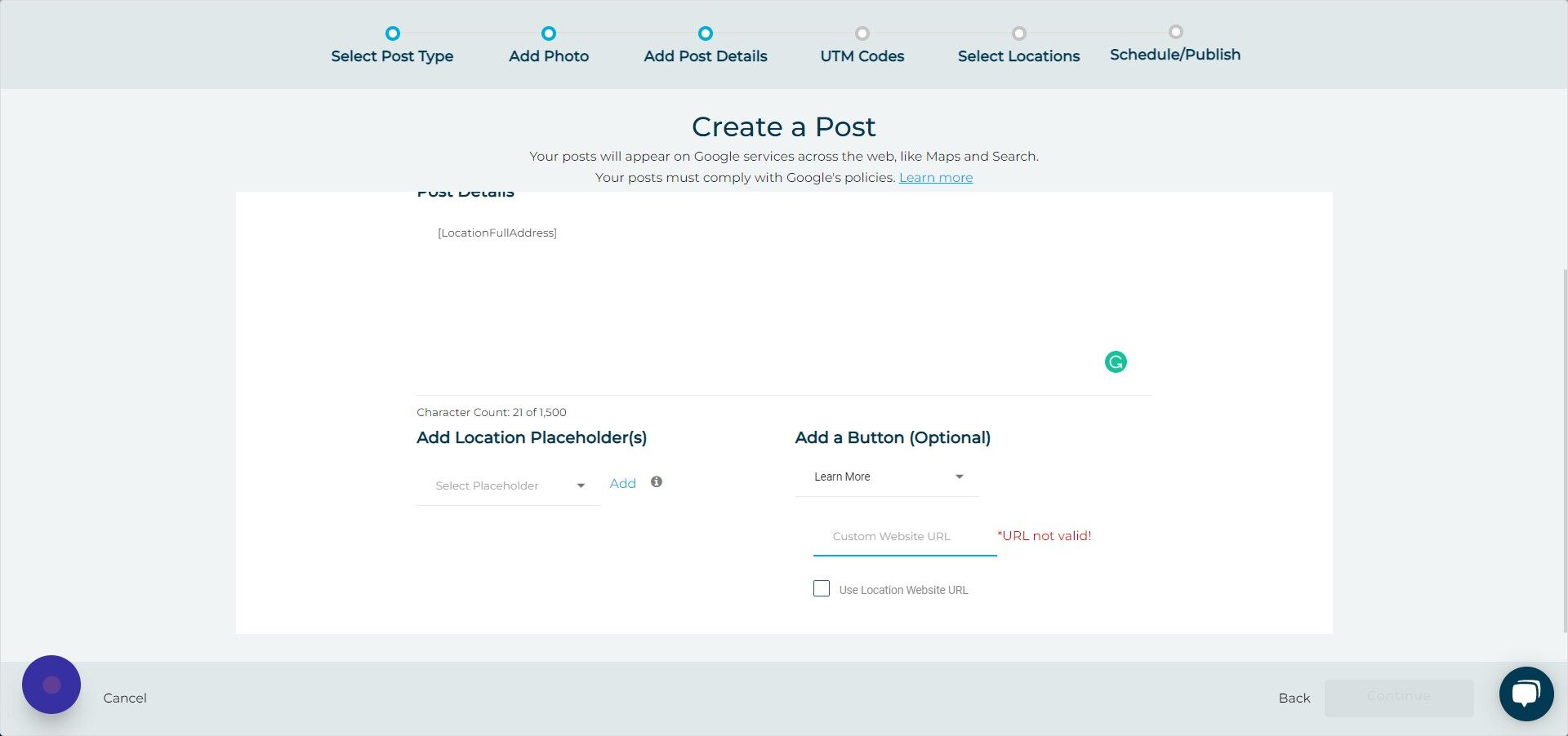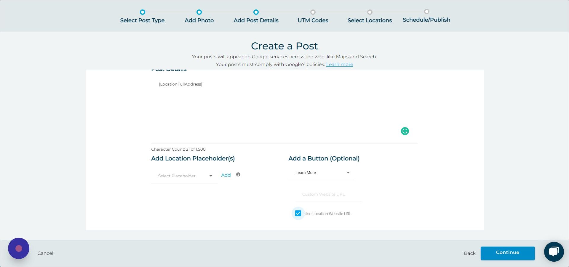 9. You may also add placeholders - this is useful if you are scheduling a post for multiple locations and want to make certain aspects of the post unique, such as location addresses.