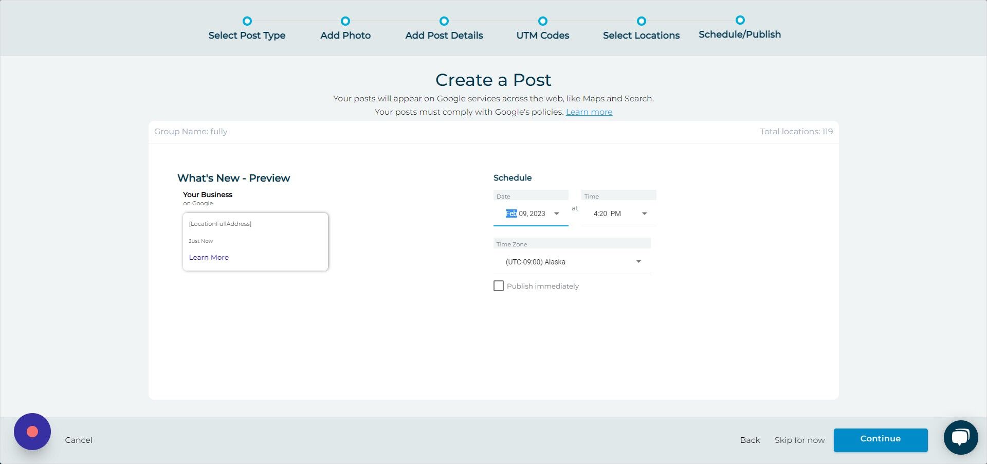 25. Schedule the post for the desired date and time. You can also select "Publish Immediately" if you'd like the post to go out now