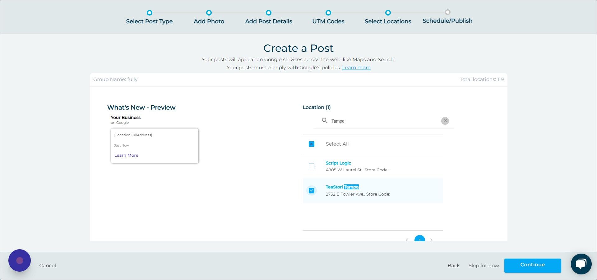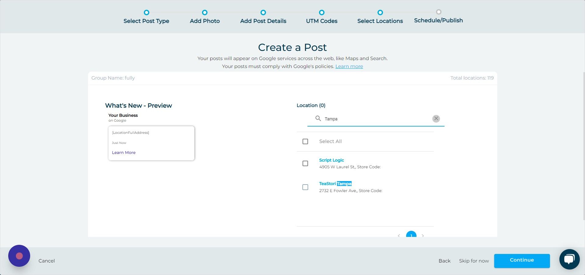 19. This step is where we determine which locations we'd like the post to. There are several ways to go about this