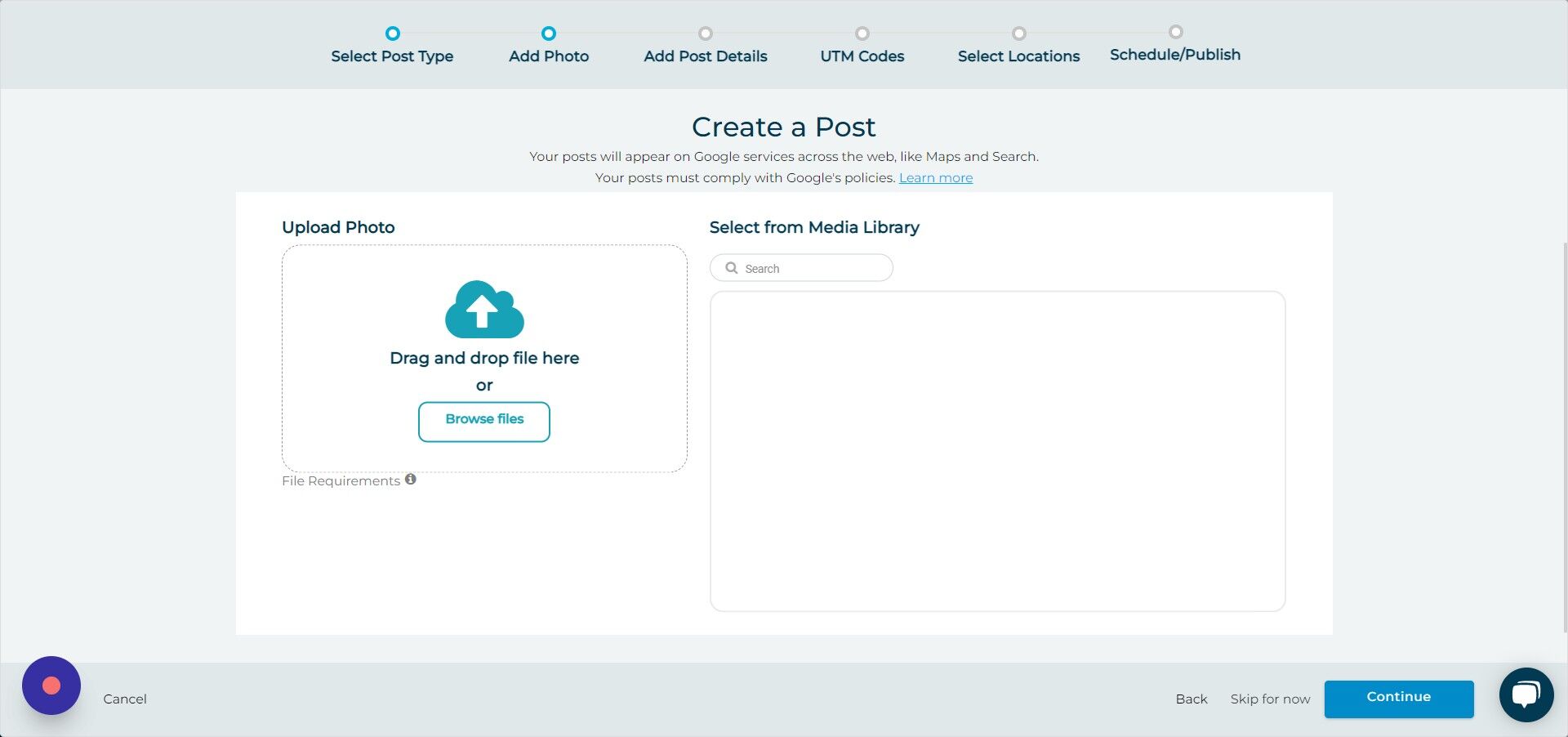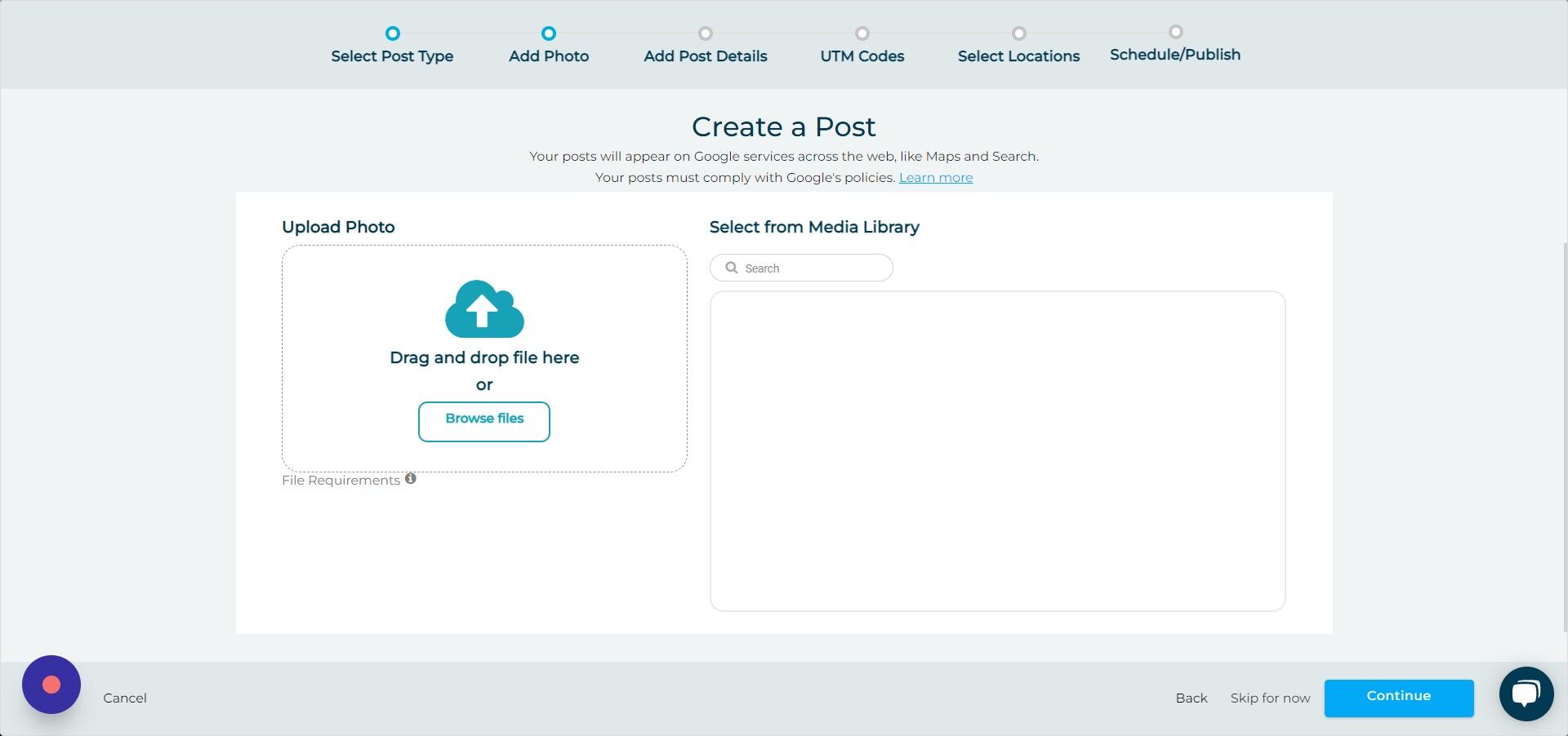 6. Add the photo to be utilized for the post - there is also an option to the right allowing you to use a photo that you already uploaded on the Photo tool